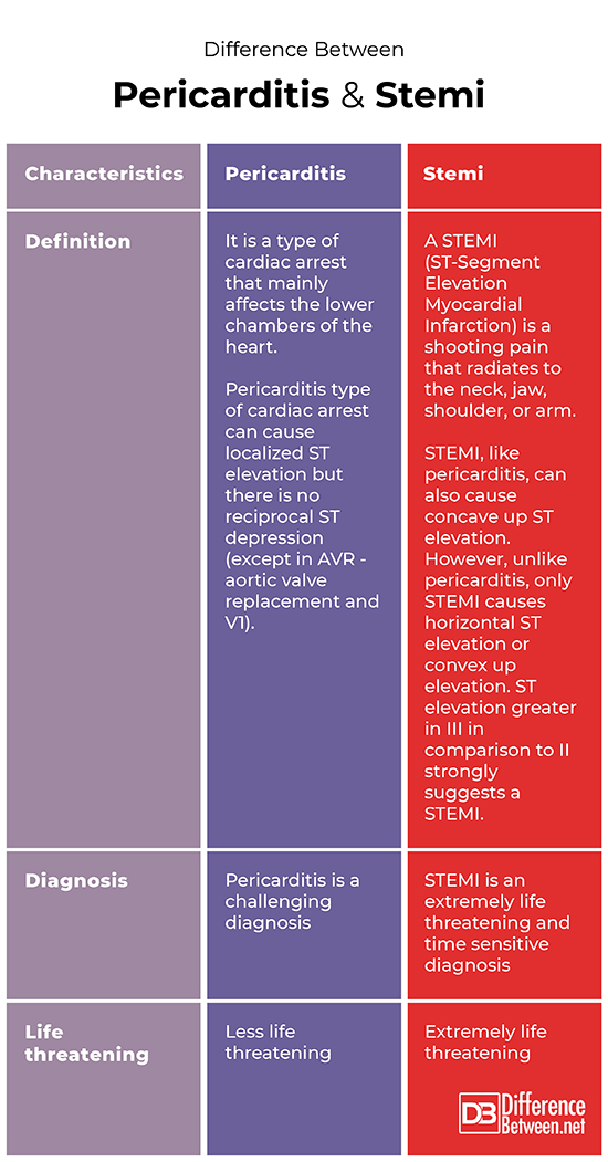 The points of difference between Pericarditis and Stemi have been summarized as below: