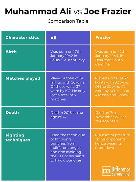 Muhammad Ali vs. Joe Frazier: Comparison Table