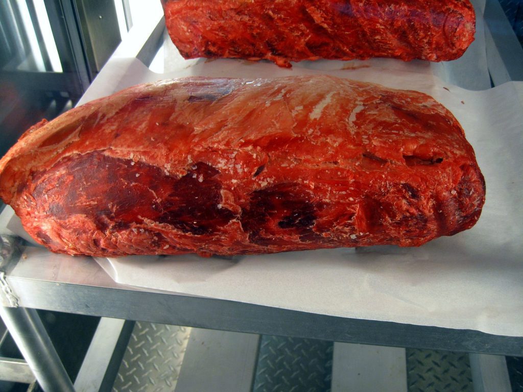 Aging greatly enhances the flavor and adds to the tenderness of the meat and the process starts immediately after the animal is slaughtered. When the meat is aging in a vacuum-sealed polyethylene bag, it is called “wet-aging” because the meat is not exposed to the air, resulting in less or no moisture loss, thereby maximizing profits for the producers. Dry-aging, on the other hand, is a more complex process where the carcass is split into hind quarters and front quarters and allowed to hang by hooks in a humidity-controlled cooler for about three to four weeks. Professionally managed dry-aged beef is expensive, so suppliers resort to wet-aging to save time and money. Regardless, dry aged meat tastes much better than wet-aged meat.