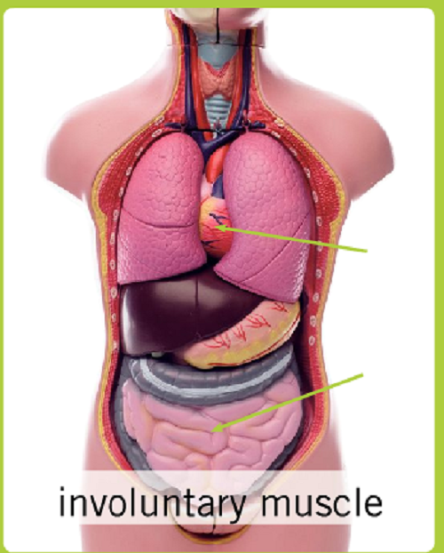Involuntary muscle includes: the smooth muscles that line organs, as well as the cardiac muscle of the heart.