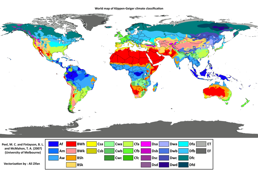 [3]Means, Tiffany. 2019. Koppen Climate Classification System. ThoughtCo. Available at: https://www.thoughtco.com/the-worlds-koppen-climates-4109230