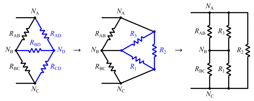 – The wye connection is a three-phase four-wire circuit used in a three-phase electrical system which is formed by connecting stating or terminal ends of all the three windings together. This common point is called neutral point which is represented by “N”. The neutral cable is connected where the three phases meet at the center. The delta connection, on the other hand, is a three-phase circuit formed by connecting one end of winding to staring end of other and connections are continued to form a closed loop which resembles a triangle.