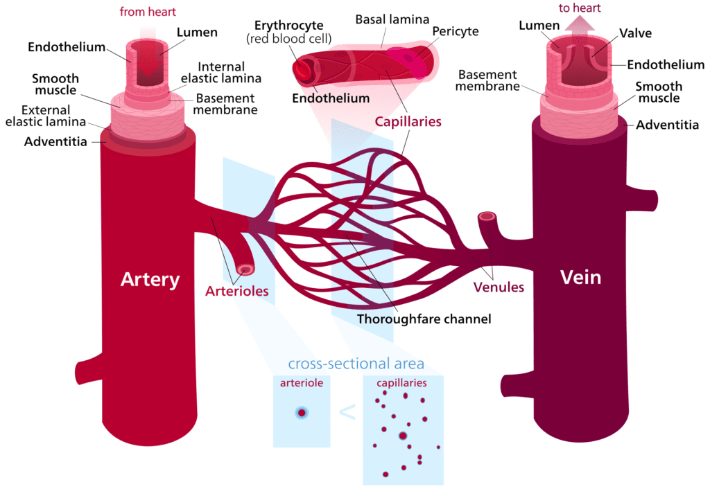 Blood capillaries are the tiniest blood vessels of the circulatory system that occur between arteries and veins.