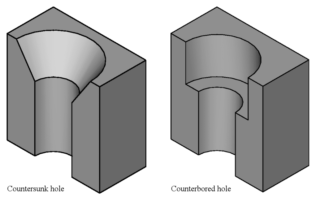 Shape and Size of the Hole in Counterbore Vs. in Countersink